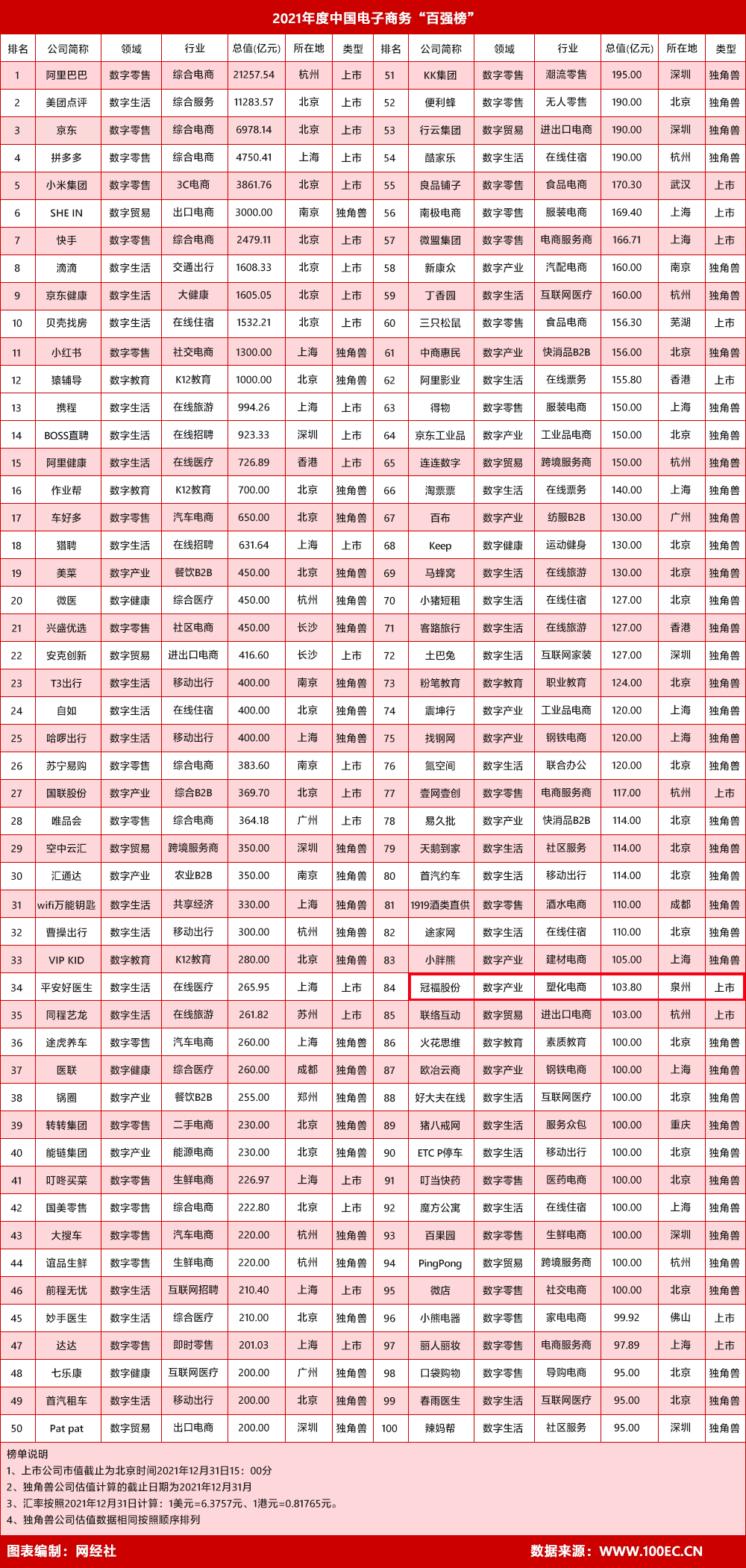 近日,国内知名电商智库网经社电子商务研究中心(100EC.CN)发布了《2021年度中国电子商务“百强榜”》,凭借子公司塑米信息的稳健发展及创新服务,冠福股份荣誉入榜。